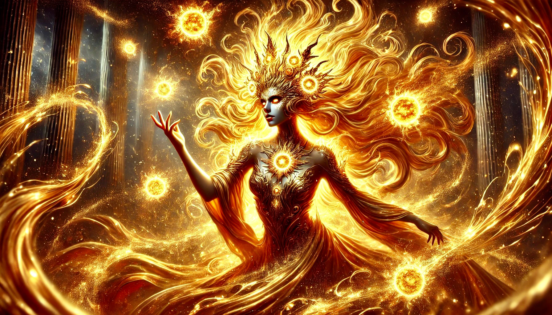 In a realm that blazed with intensity and passion, Queen Ignis reigned supreme over the domain of Fire. Her kingdom was a land of eternal embers, where volcanoes served as both fortress and forging ground, and where the essence of transformation burned within the hearts of its inhabitants. Ignis’s spirit burned fiercely; every flicker of her flame was a call to courage and adventure. While her realm was scorching and unyielding, it was also one of ceaseless change - a crucible in which compromise was melted into strength and passion morphed into resilience. Her subjects, ignited by her fervour, learned that in the heat of challenge, transformation was possible.