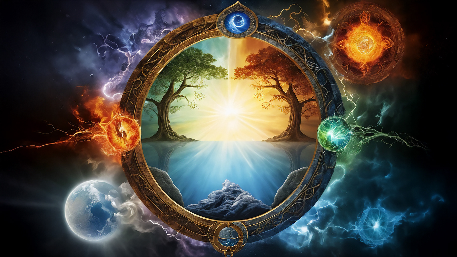 As time flowed on, nature continued its eternal cycle of growth, decay, and rebirth. The kingdoms of Earth, Water, Air, and Fire remained forever intertwined - a cosmic dance conducted by the four queens whose wisdom had become as enduring as the stars. It was said that on quiet nights, if one listened closely in the rustle of leaves, in the lull of waves, in the whisper of winds, or even in the crackle of a gentle hearth fire, one might catch a murmured echo of the queens’ ancient promise: that light and life would always triumph when nurtured by compassion, understanding, and unity.