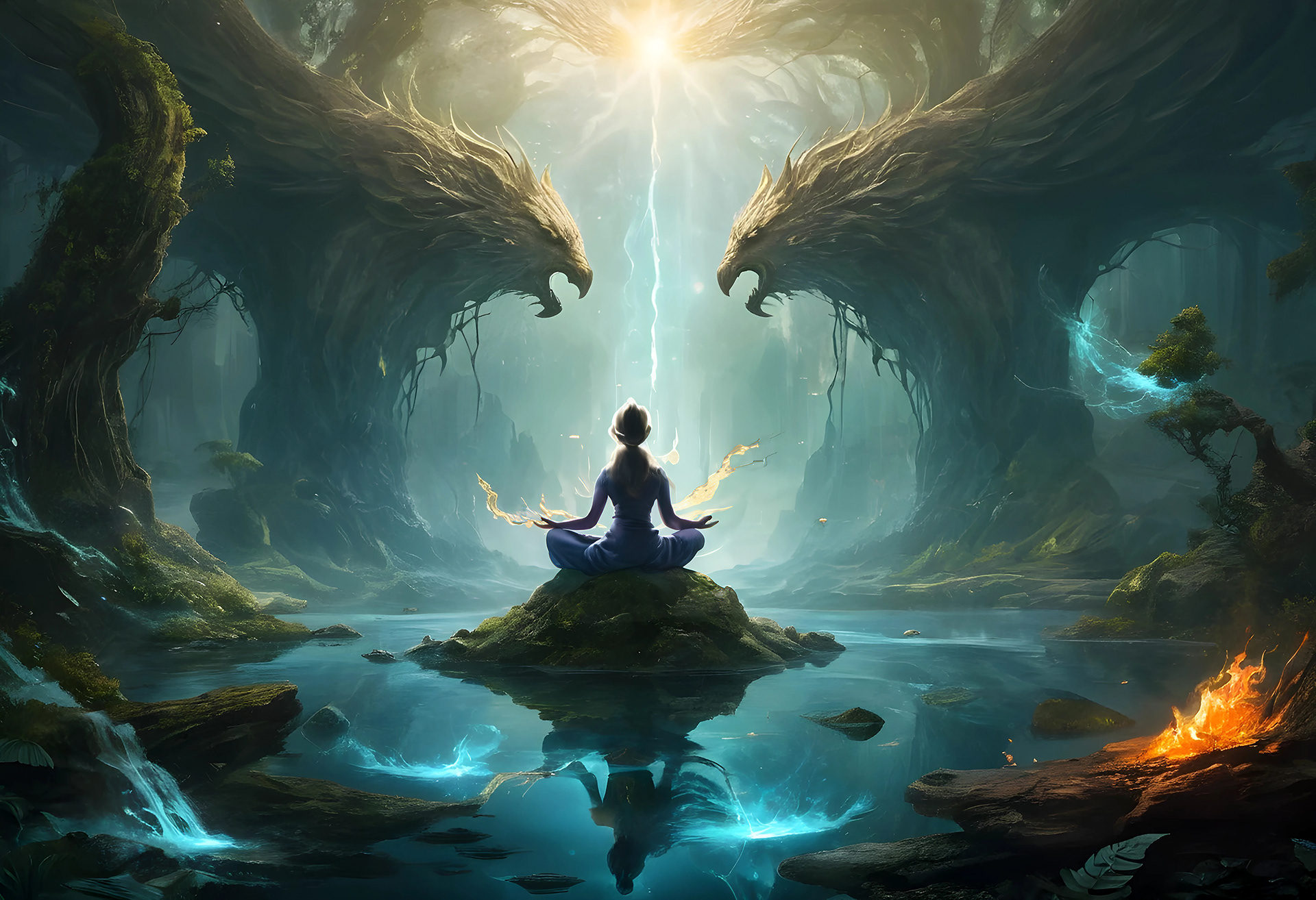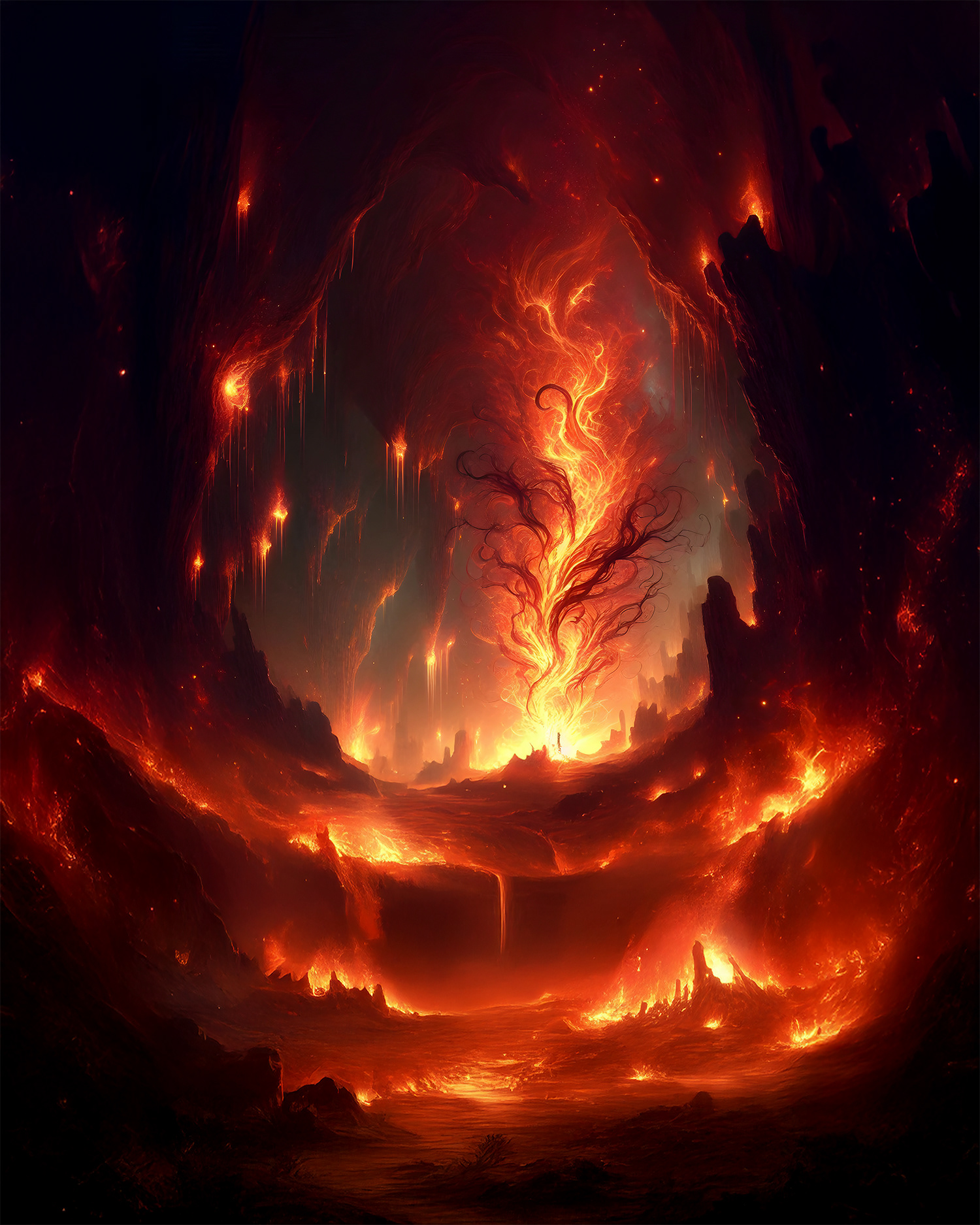 In the heart of a caverns’ maze lit by flames that danced unpredictably, Ignis confronted a manifestation of unbridled fury - a wildfire that threatened not only to consume the land but also to extinguish the possibility of transformation. In this cavern, every spark and ember seemed to rebel against its natural order, fuelling a cycle of uncontrolled destruction. Ignis stepped into the inferno, her presence a beacon amid the chaos. Amid the searing blaze, she channelled her own inner fire - not the wild, destructive conflagration, but a disciplined, creative inferno that burns with purpose and vision. With focused determination, she enveloped the wildfire in a circle of controlled flame - a manifestation of her capacity to harness passion without letting it overpower reason. As the blaze began to diminish, subdued by the measured strength of her resolve, Ignis understood that true courage was not the absence of rage but the grace to manage it, to channel it into acts of transformative creation rather than devastation.
